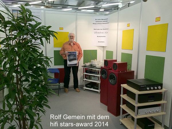 Rolf Gemein - der rührige Macher von Symphonic Line, begeistert ungemein mit seinem neuen Lautsprecher RG5 Reference mit Görlich Vollkonus Bass und verstellbarem Air Motion Transformer. Die CD vom Udo Jürgens Konzert aufgelegt, vermittelt den Eindruck, als würde der Künstler im Raum stehen. Zuhörerkommentar: toll - Gänsehautfeeling!